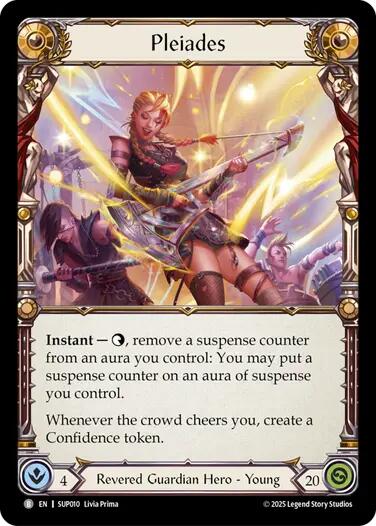 Instant — {t}, remove a suspense counter from an aura you control: You may put a suspense counter on an aura of suspense you control. Whenever the crowd cheers you, create a Confidence token.